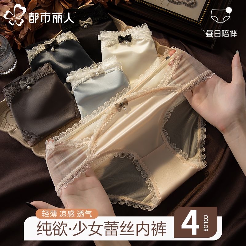 都市丽人女士内裤女蕾丝面料性感无痕纯欲风中腰新款女装三角短裤